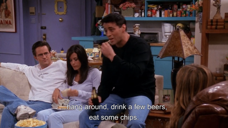 『프렌즈』에서 감자칩이 가장 명시적으로 드러나는 에피소드는 시즌 7 3화다. 경매에서 보트를 산 조이가 드디어 편히 쉬면서 감자칩 먹을 곳이 생겼다고 말하며 모니카 집 소파에 앉아 감자칩을 먹는다.