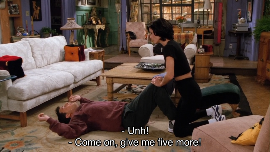 먹는 것만 언급하고 운동은 언급하지 않았다. 통상적으로 운동을 하는 것도 다이어트에 포함하므로 이런 측면도 설명해야 하지 않을까 싶다. 『프렌즈』에서 모니카가 챈들러에게 다이어트를 강요하는 에피소드(시즌 2 7화)에서는 식단은 나오지 않고 운동하는 모습만 나온다.